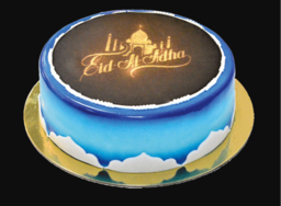 EID CAKE "EID AL ADHA" BLUE, 1KG (LAYERS OF CHOC.& VANILLA, WITH SUGAR PASTE)