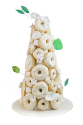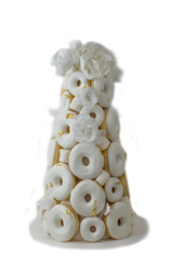 DONUT TOWER 12 WHITE WITH FLOWERS & GOLD (D20 H45)