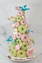 DONUT TOWER 10 PINK & GREEN TROPICAL THEME (D20 H45)